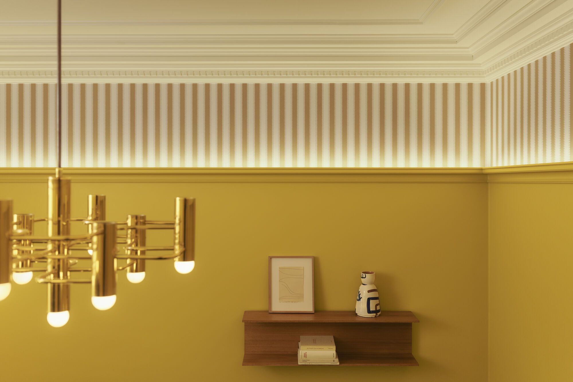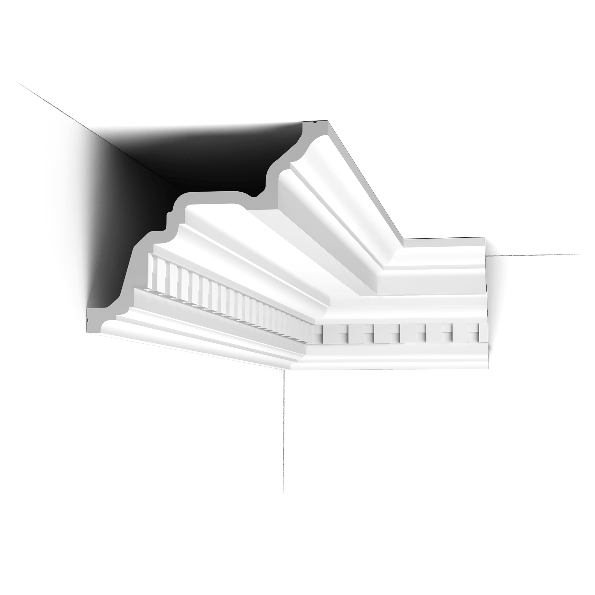 Cornisa almenada grande y clásica. Añade sofisticación instantánea a cualquier interior.